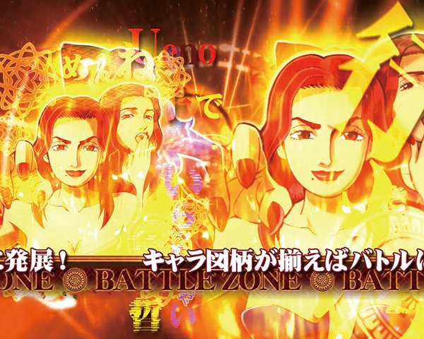 キャラがアップ後に図柄がテンパイすればバトルに発展。