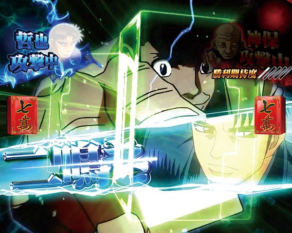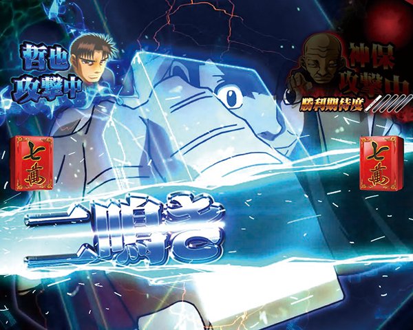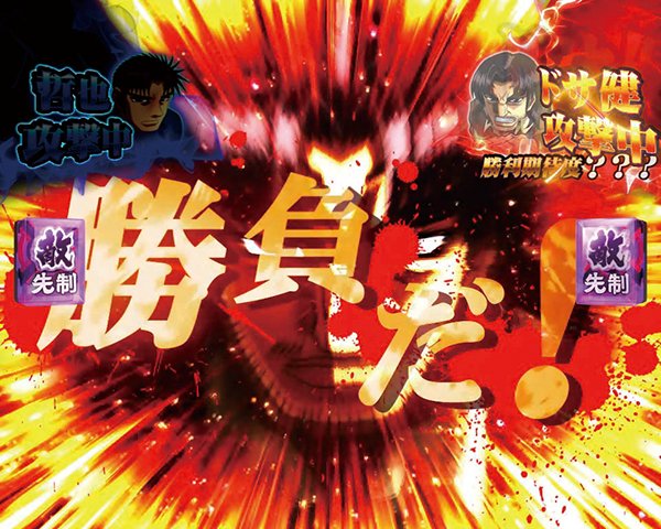 勝負に特化したスペックが、闘牌を新たなる領域へ導く! 出玉増加のカギを握る「玄人BATTLE」は哲也がバトルに勝ち続けるかぎり継続し、勝利時は16R大当り(約2240個)が濃厚。さらに「コンビアタッカー」と「裏ドラポケット」が搭載されたことにより、大当り出玉は歴代最強へ! 一撃性を備えた出玉感とヒリつくような緊張感が雀聖を呼び覚ます!! |