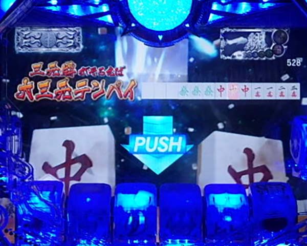 中図柄に7図柄停止から発展!? ボタンPUSHで文字が完成すれば大当り!?