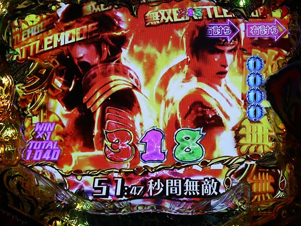 アイコン停止で無双JUDGE BONUSとなり、ラウンドバトルに勝利すれば無双BATTLE MODEに突入。