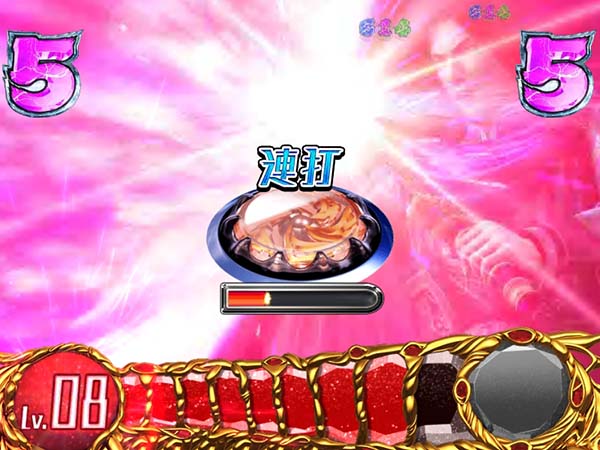 液晶下部のメーターのレベルが上がるほど勝利期待度が上昇。レベル10になれば大当り濃厚!?