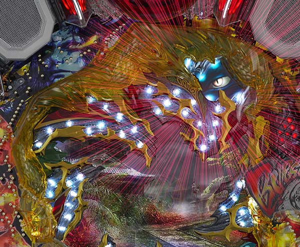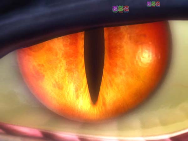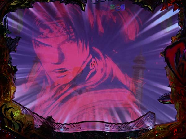液晶右上の役モノが可動すると遠呂智の目が現れる。