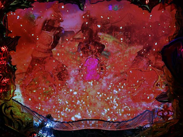 図柄停止時に液晶下から光が発生。赤エフェクトならチャンス。