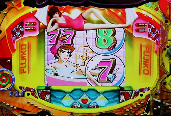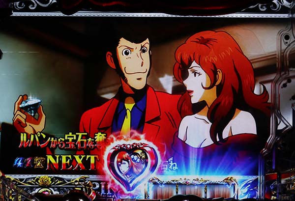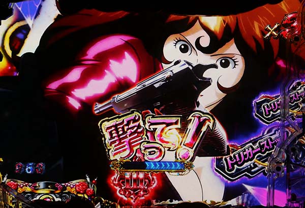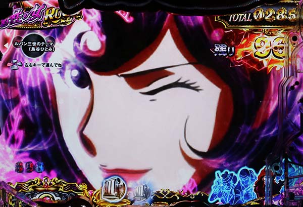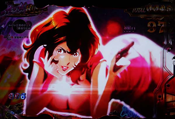 ボタンPUSHで不二子が4回カットイン。エフェクトが赤ならチャンス。