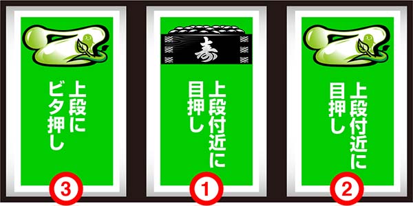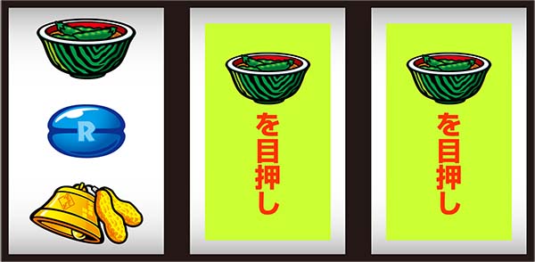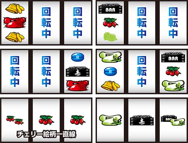 通常時はチェリーとスイカを取りこぼす可能性があるため、BAR狙いのチェリー落としで消化するのがベターだ。スイカまでスベった時は中・右リールにスイカを目押し。チェリー停止時を含め、それ以外の停止形は中・右リールフリー打ちでOKだ。