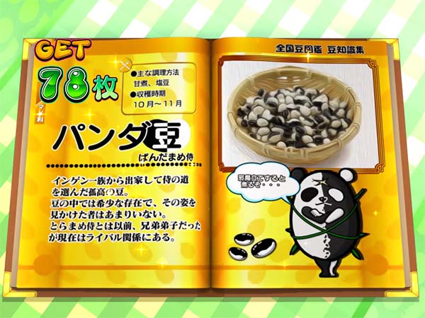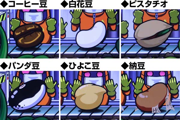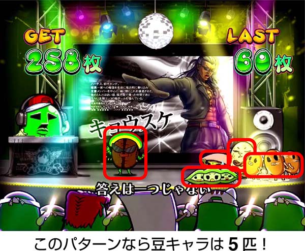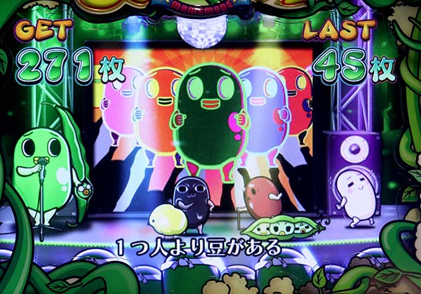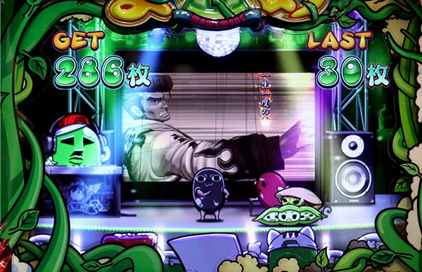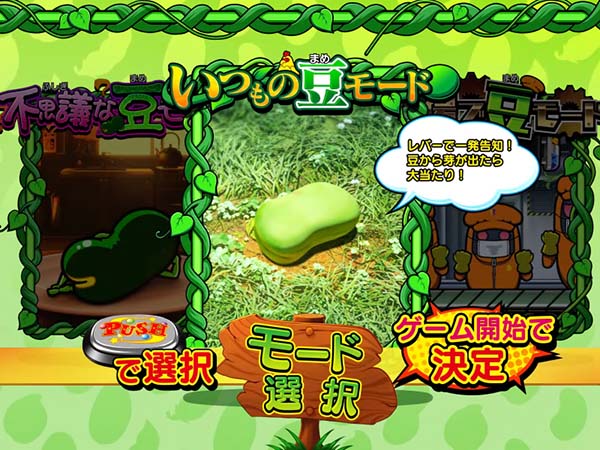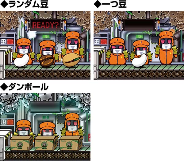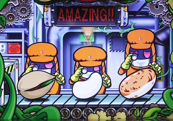 可愛らしい豆たちによるコミカルな演出がふんだんに盛り込まれた1台。 スペックはオーソドックスなボーナスタイプ。獲得枚数はBIGが約312枚、REGは約104枚。 通常時は告知演出の異なる3つの豆モードから、好きなモードを選択して楽しめるぞ。 |
