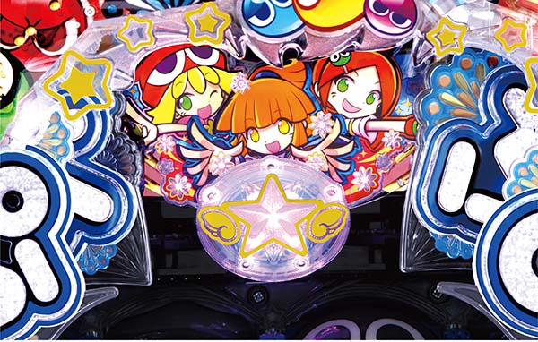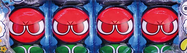 国民的アクションパズルゲーム「ぷよぷよ」がドラムパチンコになった!! 大当り確率約1/159、確変突入率65%のライトミドルタイプ。SUPERぷよぷよCHANCEに突入させ、小当りRUSHで出玉を増やすスペックとなっている。 シンプルながらも奥深い「ぷよぷよ」の面白さを、れんさがうむ爽快感とぷよドラムの単純明快な動きで見事に表現した1台だ。 |