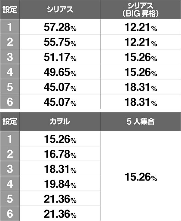 BIGでのみ出現かつ高設定ほど高い出現率を誇る。