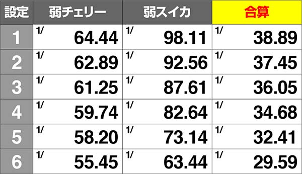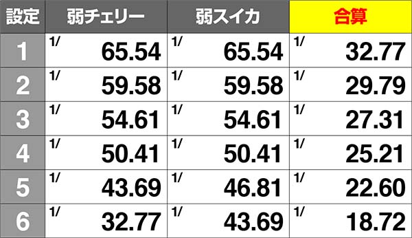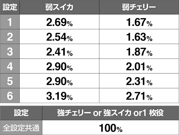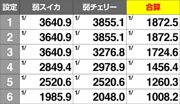 【弱スイカと弱チェリーに大きな設定差が存在】