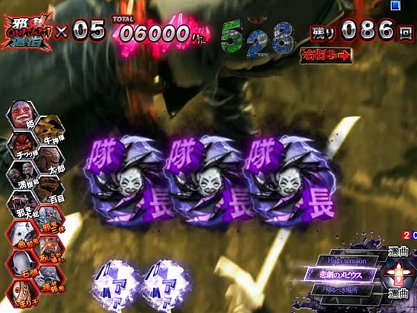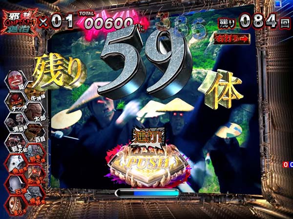 ミッション終盤で邪鬼の文字が停止すれば、実写邪鬼リーチに発展。