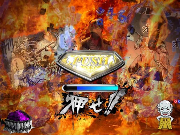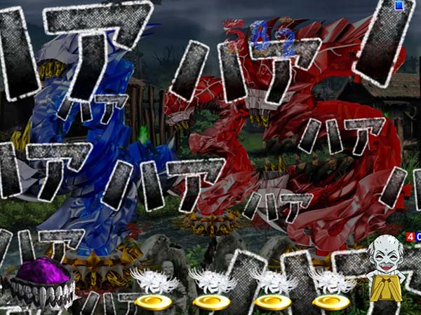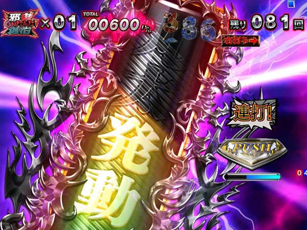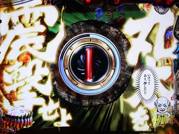 3つ揃いでボタンが出現。ボタンPUSHで邪鬼登場でリーチに発展。