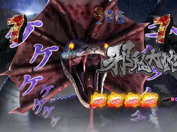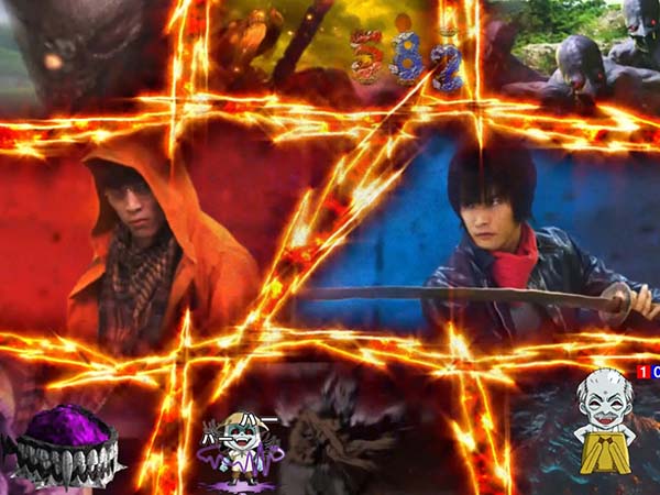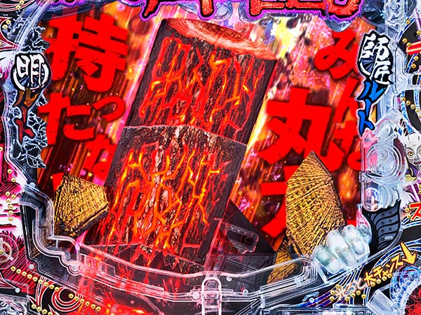 通常時に左打ちと右打ちを選択でき、消化する始動口によりゲーム性が異なる。 左の明ルートはオーソドックスなV-STタイプ。大当り後は必ずSTor時短の「邪鬼退治」に突入し、連チャンを目指すゲーム性となっている。 右の師匠ルートは、大当り後に電サポが一切つかないかわりに16R(約2240個)比率が50%に大幅アップ。連チャンでつなぐ明ルートと一撃を目指す師匠ルートを駆使し、サバイバルを生き抜け! |