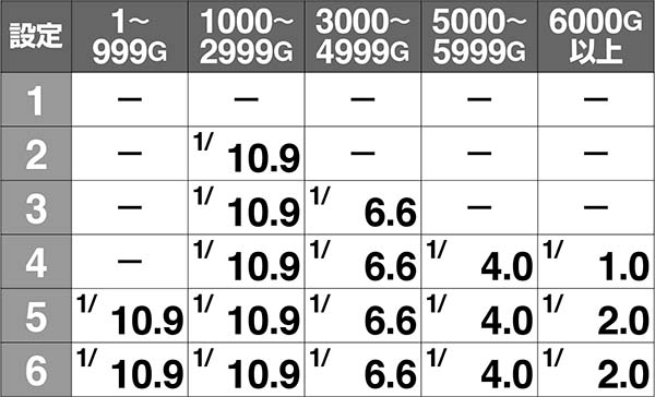 6000G以上…設定4以上確定+点灯確率超大幅アップ