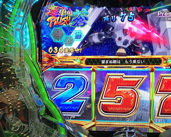 初打ち15000発、297セットまで行きました。 ラッシュ中の爽快感がパナい。 神中はむしろハマれとすら思うほど。 演出はあまり戦闘はなかったかな。もっとメカ戦闘出していれば面白いと思いました。