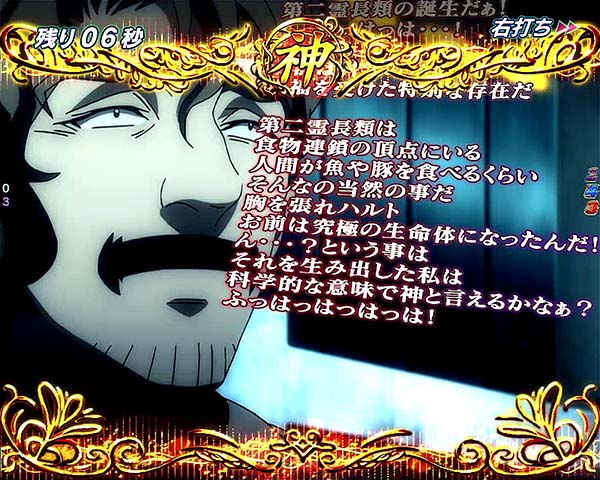 スーパーリーチ中に液晶下の役モノからニンゲンヤメマスカの文字が出現。