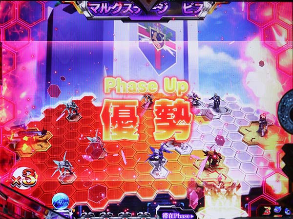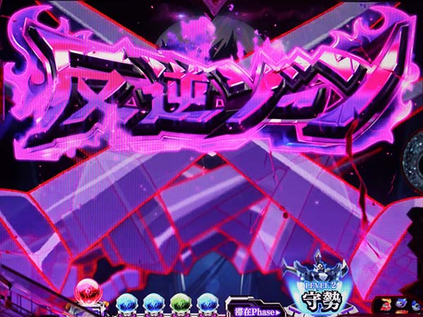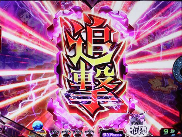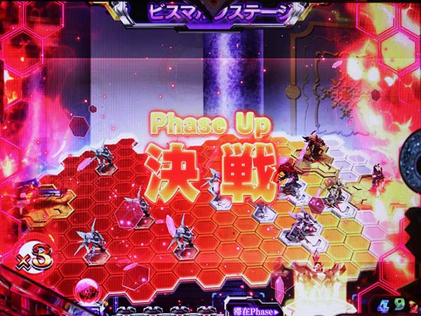 先制攻撃後の追撃は防御成功で16R確変獲得!? 失敗で4R大当りとなる。