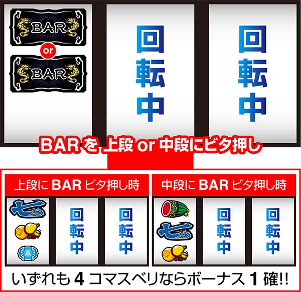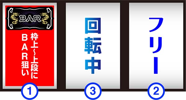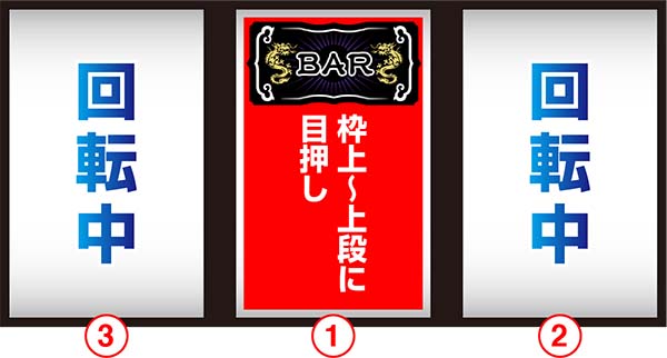 「左リール枠上〜上段にBARを目押し」