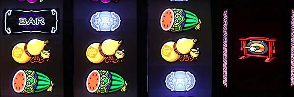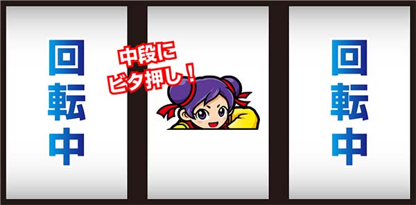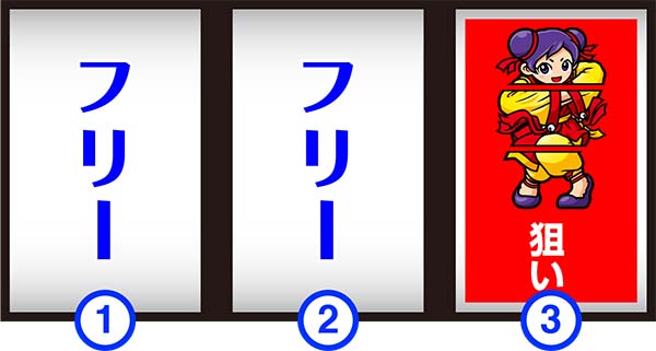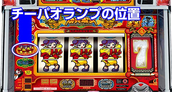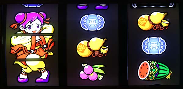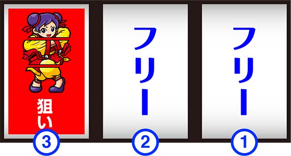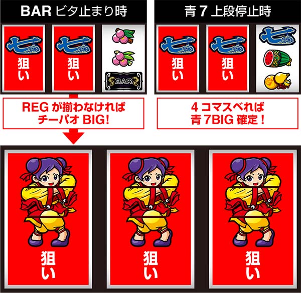 順押しで左中リールをフリー打ち(必ず右上がりにリプレイがテンパイ)し、右リールに3連チーパオを目押しすればOKだ(成功時は右上がりリプレイ・リプレイ・チーパオ顔)。