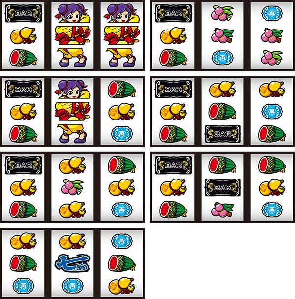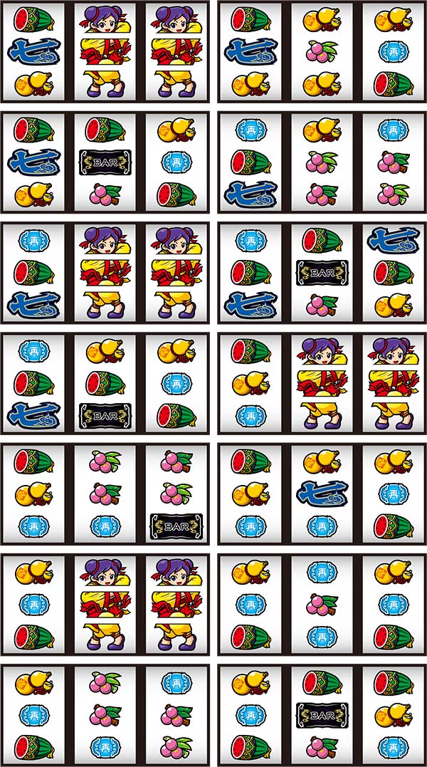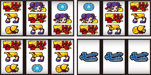 スペックはボーナス+RTタイプ。ボーナスはBIGとREGの2種類があり、前者は簡単な技術介入をおこなうことでMAX285枚、後者は左リールに青7を狙って消化するだけでMAX117枚を獲得できる。 RTは「奥義(前半)」、「試練(後半)」の2段階で構成されており、BIG終了後に必ず突入。試練で昇格リプレイを入賞させることができれば再び奥義に昇格する継続率約66%のループタイプとなっている。 |