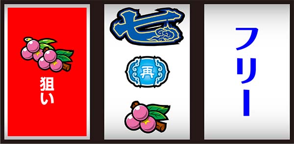 右リールは3コマの余裕があるためアバウト狙いで問題ないが、失敗すると維持リプレイ(右上がりリプレイ)になるので注意しよう。