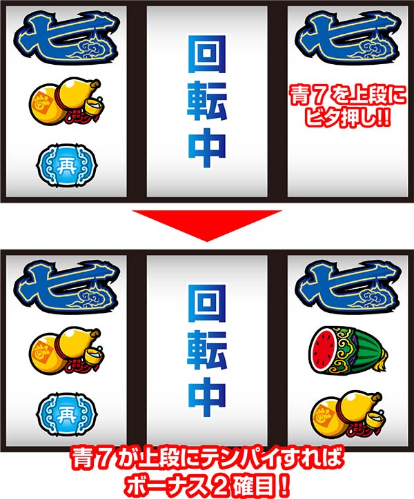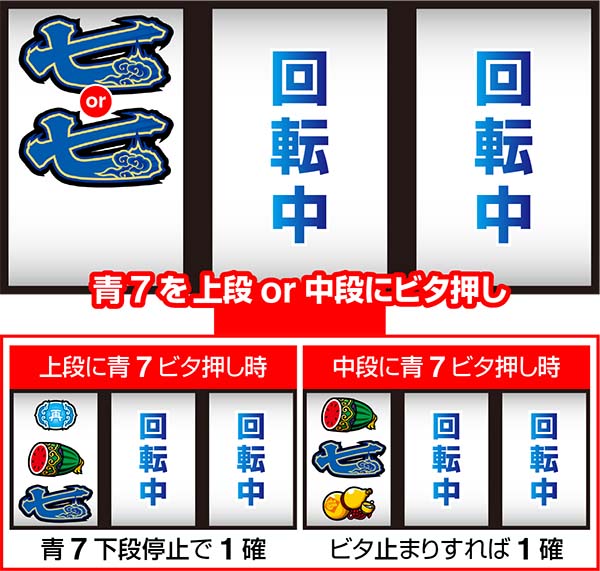 条件…ボーナス終了後1G目または、RT終了後1G目に青7BIG成立