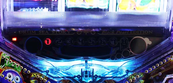液晶では味わえない光と音の演出で人気のドラム海物語シリーズにBLACKの歴史が加わる! ST突入率100%、電サポ50回転付きの「大海物語BLACK LIGHT」を継承したライトミドルタイプ。大当りとSTは右打ち消化とスピード感も味わえる仕様となっている。 通常時から8個保留を活用しており、電チュー(特図2)経由は24%が15R。遊びやすさとBLACKならではの出玉感を搭載した1台だ。 |