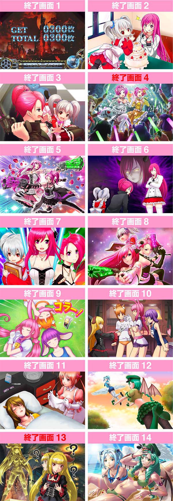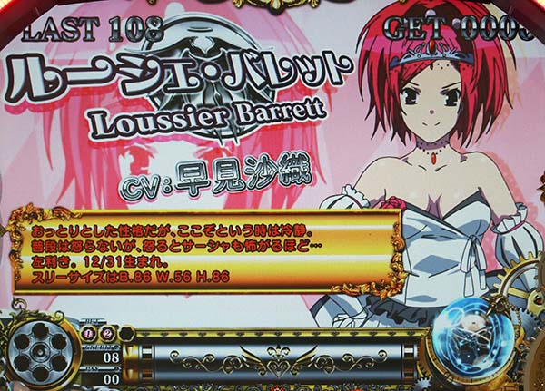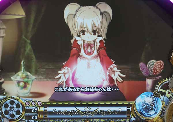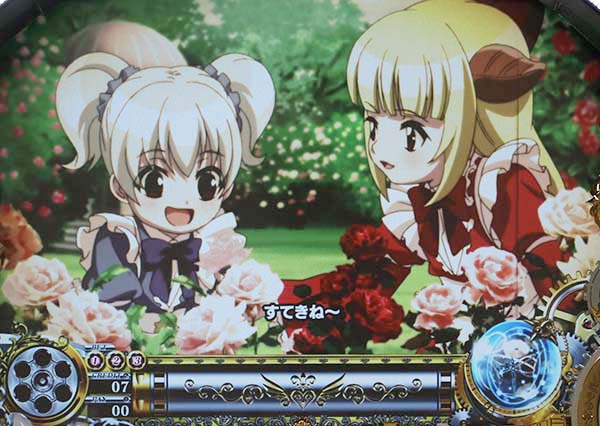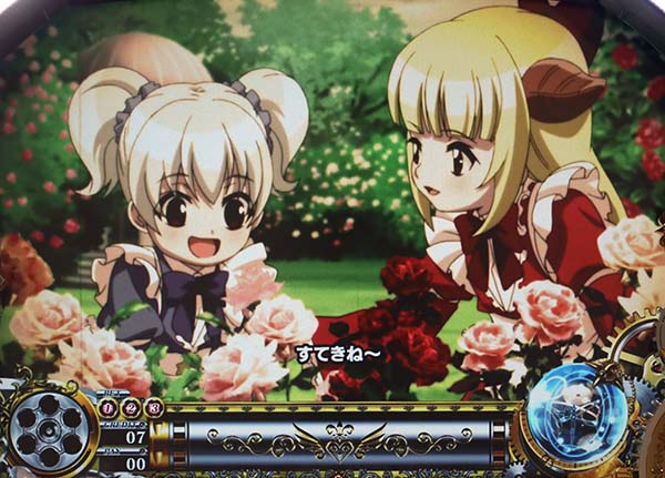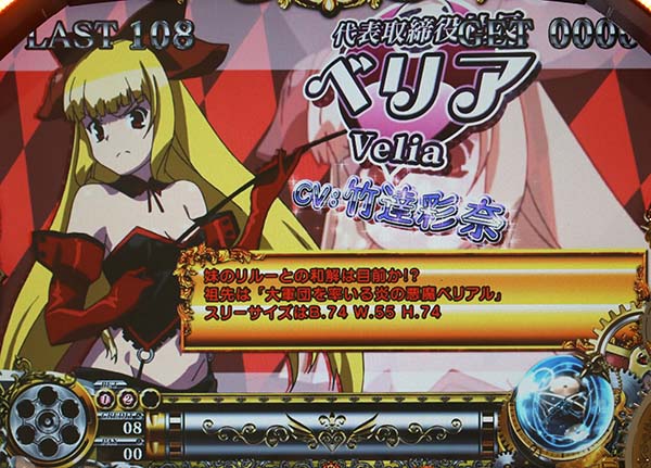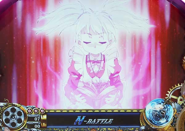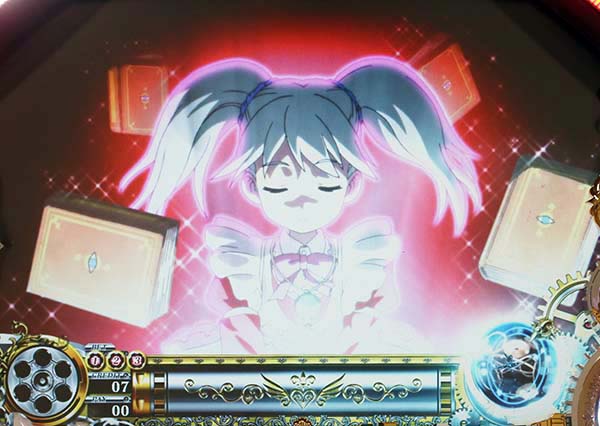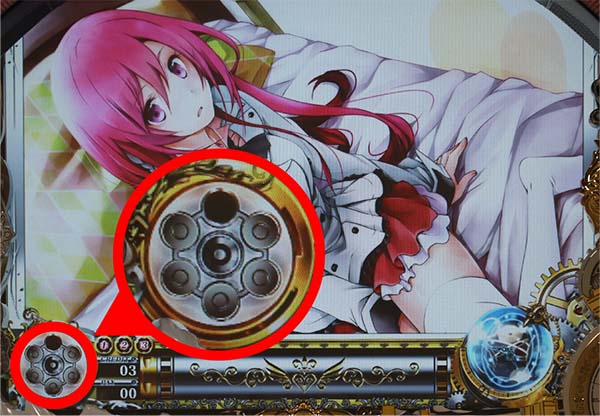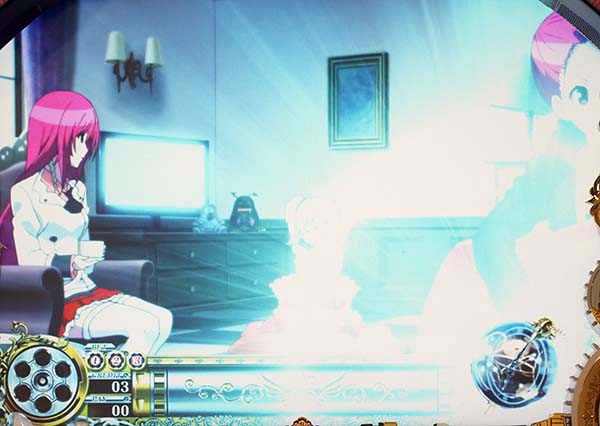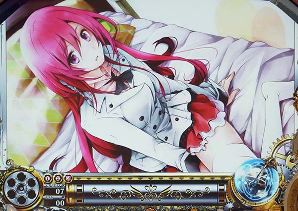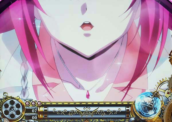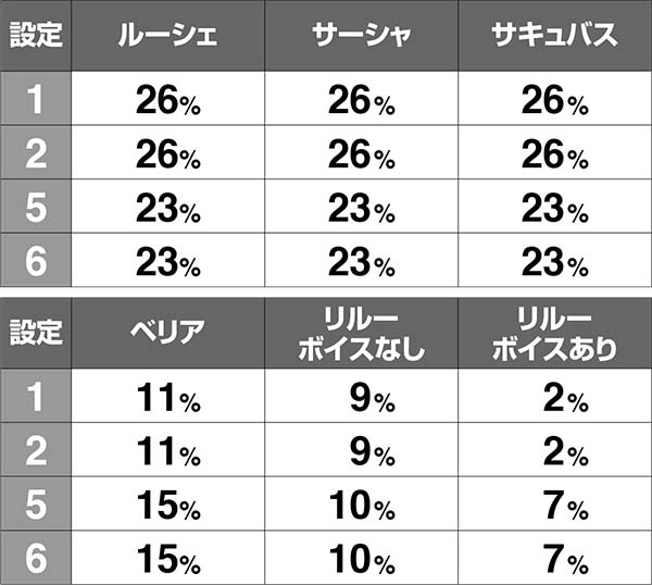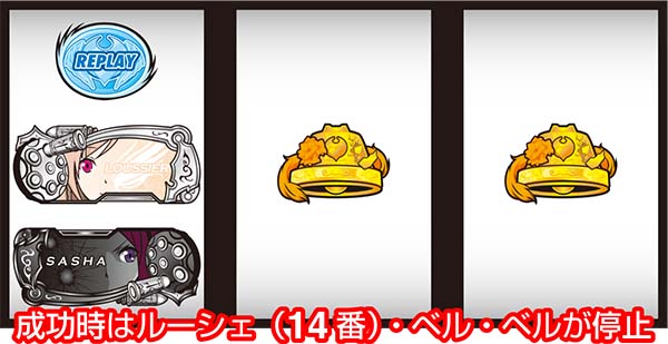 設定示唆要素となる一枚絵の出現手順は、リール左側にあるチャンスランプ点灯時(告知音も発生)に実行。左リール上中段に14番のルーシェ絵柄を目押しし、中段に停止すれば一枚絵が出現し設定を示唆する。ベリアorリルーの一枚絵出現時は高設定期待度がアップする。