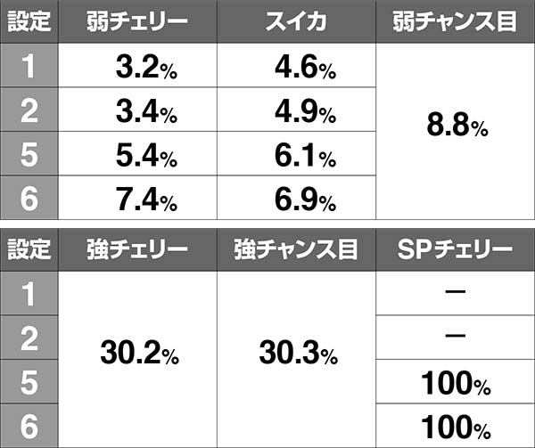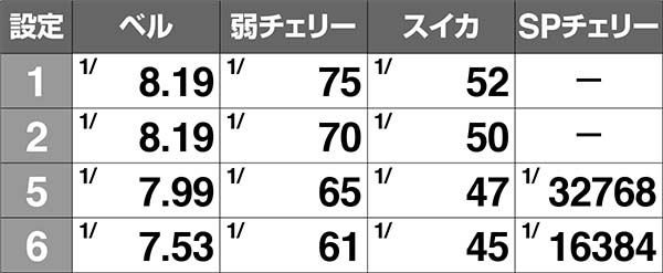 SPチェリーは確率こそ低いが、出現すれば設定5以上が確定する。