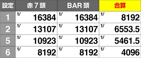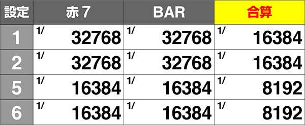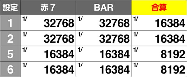通常時はレア役でボーナス当選を目指すシンプルなゲーム性。ボーナスはBIG(300枚)とREG(約90枚)の2種類を搭載している。 1セット30GのRTはボーナスorRT後に必ず移行するCZ中に押し順当てを成功させれば突入。RTとCZのループ率は約55%となり、RTを連チャンさせつつボーナスを絡めることで大量出玉を狙うことができる。 |