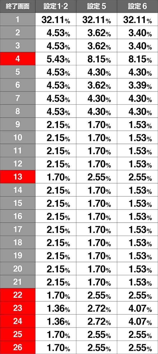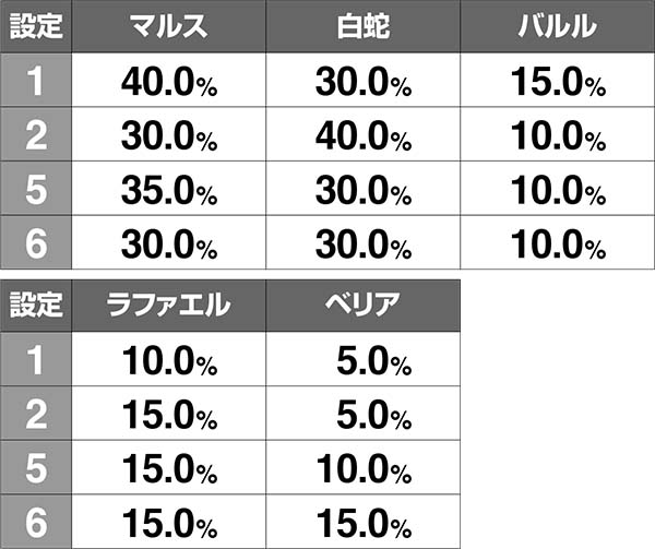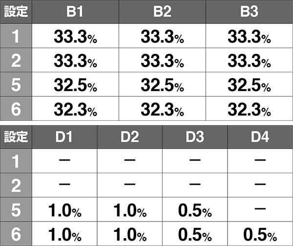 また、各ランダムの中にも振り分けが存在し、出現キャラに応じて設定を示唆している。