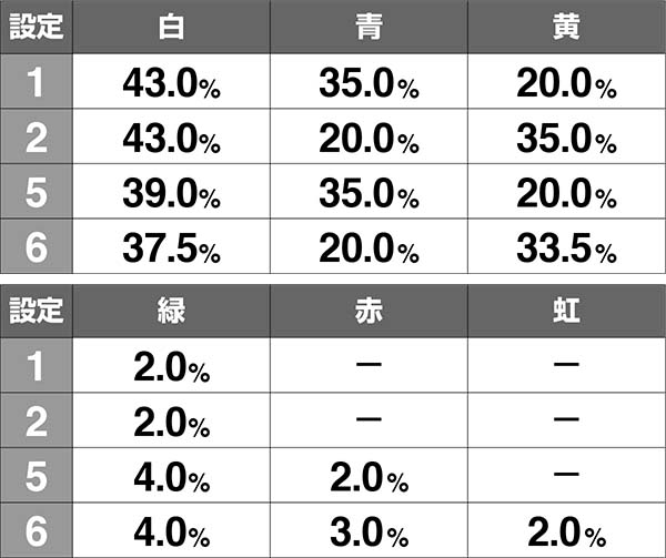 シナリオ不問で金キャラが出現すれば設定2以上、シナリオ1(オール金キャラ)なら設定5以上が確定する。