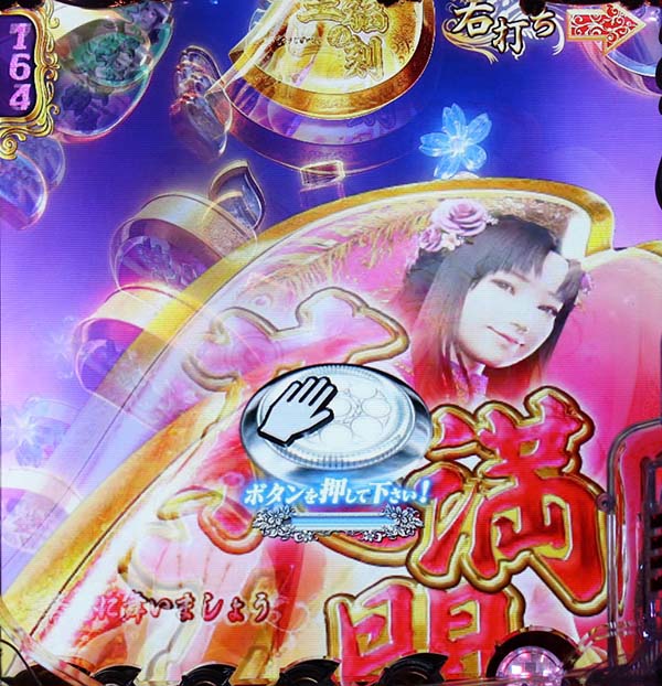 リーチ後にボタンを連打すると桜ランプが点滅。