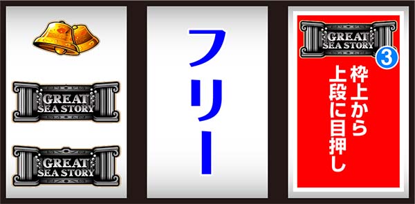 REG中を順押しで消化した場合、各リール特定の場所をすべてビタ押しした場合(左リール…赤7中段、中リール…8番のベルを中段、右リール…2番のベルを中段)、小役を取りこぼす。