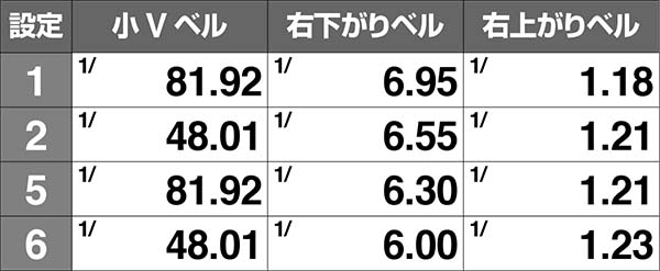 ベル否定でボーナス確定。中段揃いが通常のベルで右上がりがレアベル、右下がりならベル+青7BIG濃厚となる。