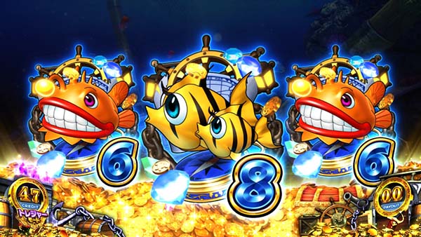 レーダーに映る魚影の数で期待度を示唆。7or9匹ならボーナスのチャンス、0匹orMAXならボーナスが確定する(MAXはBIGも確定)。