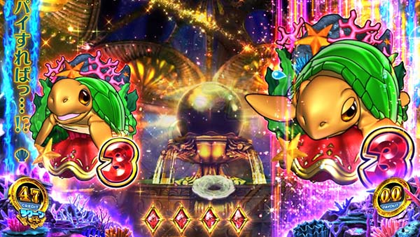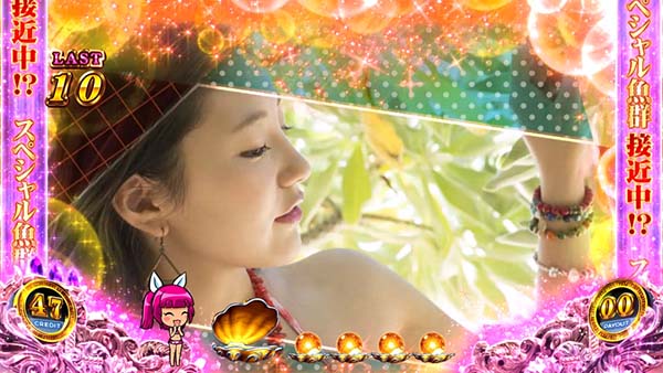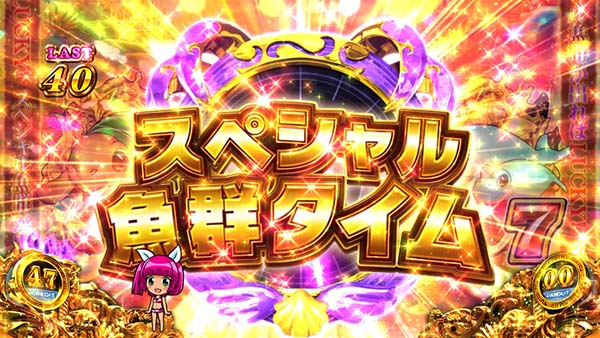 滞在中は小役成立でパール役モノが可動し、フラッシュすればスペシャル魚群タイムに昇格orボーナスとなる。昇格リプレイ成立時は目押し要らずで入賞するため、必ずスペシャル魚群タイムに移行する。