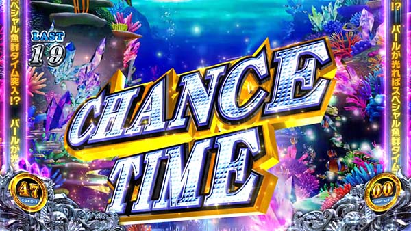 チャンスタイム中の昇格リプレイorREG後の1G目に昇格リプレイ成立で突入。滞在中はスペシャル魚群が出現すればボーナスといったシンプルなゲーム性となっている。