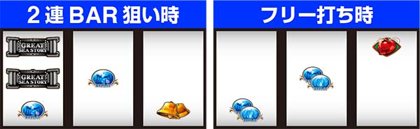 BAR狙い時の基本の停止形。中右リールはフリー打ちで消化しよう。
