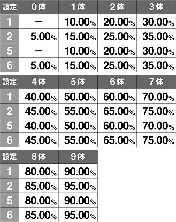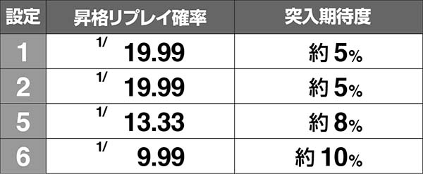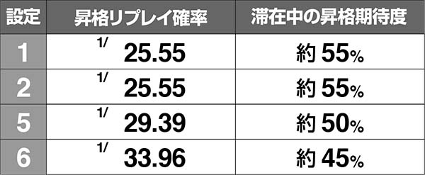 チャンスタイム中は高設定ほど昇格しづらく、REG後1G目は高設定ほど突入しやすい。