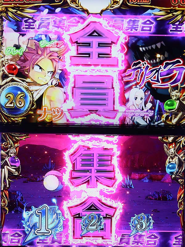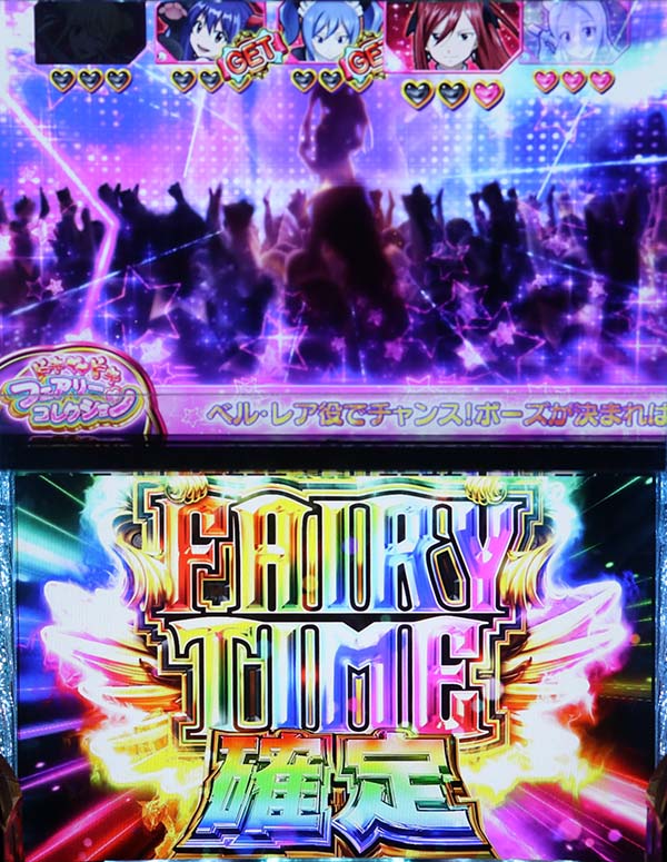 「パチスロ FAIRY TAIL」はボーナス+ARTタイプ。通常時はCZやボーナスからARTへ突入させるゲーム性だ。 ART「FAIRY TIME」は、前半パート(30or100G+α)+後半パート(ゲーム数不定)で構成され、1Gあたりの純増は約2.0枚(ボーナス込み)。前半でレア役などにより、仲間を多くストックするほど、後半パートでのバトルの勝率が高まる仕組みだ。 |