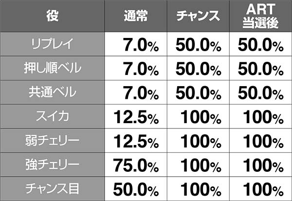 また、小役による仲間ストック抽選もARTの前半パートと同じ抽選値でおこなわれる。