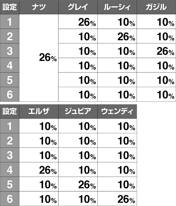 設定2・4・6…マグノリア(25%)、ルーシィの部屋(25%)、ビーチ(50%)