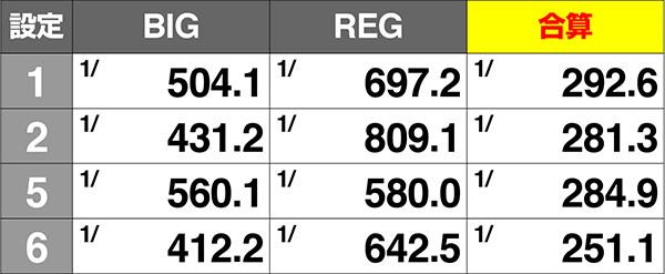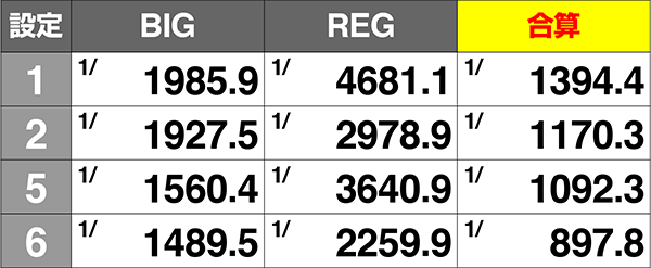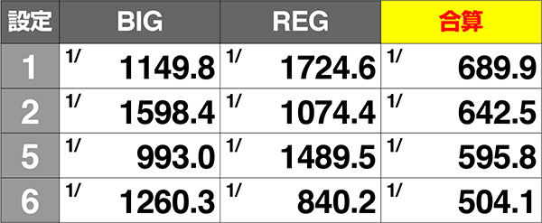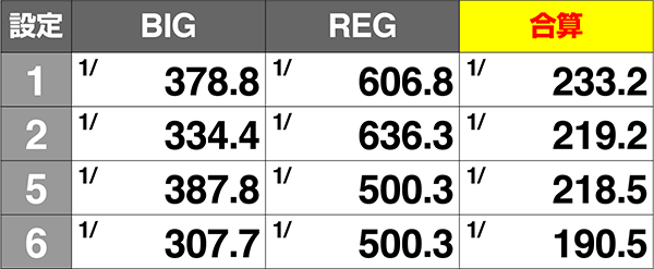 BIGはそれほど大きな差ではないが偶数かつ高設定、REGは奇数かつ高設定が優遇。