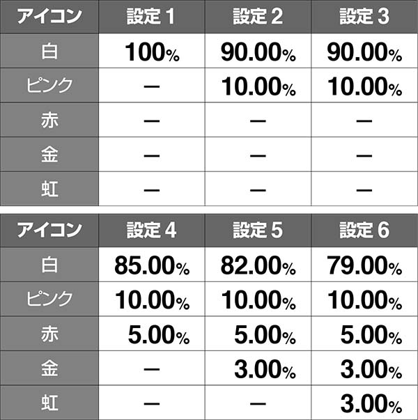 ボーナス告知時の一部で発生する変幻萌えカットインは、液晶左下のアイコンの色で設定を示唆。アイコンの色は変幻萌えカットイン発生時に十字キーで役モノを動かせば表示される。