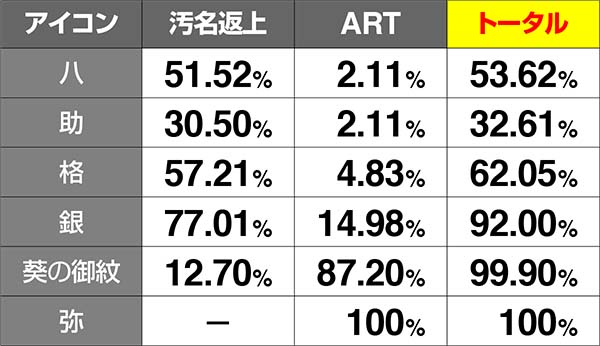 ※汚名返上中はボーナスでARTとなるため、蝶柄でもREGの可能性あり