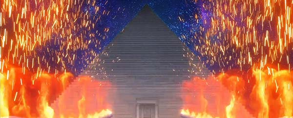 メジェドとアグリーはキャラたちの前面を通過。歴代シリーズのキャラは背景変化として登場する。