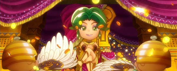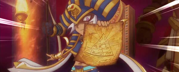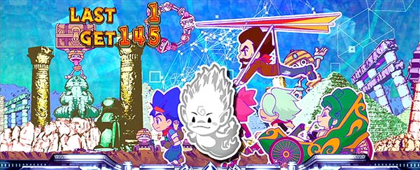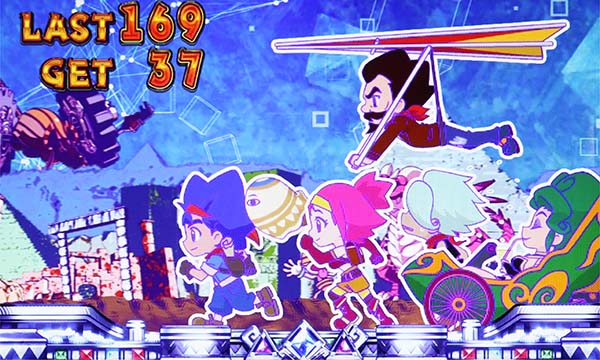 メジェドとアグリーはキャラたちの前面を通過し、歴代シリーズのキャラは背景変化として登場する。