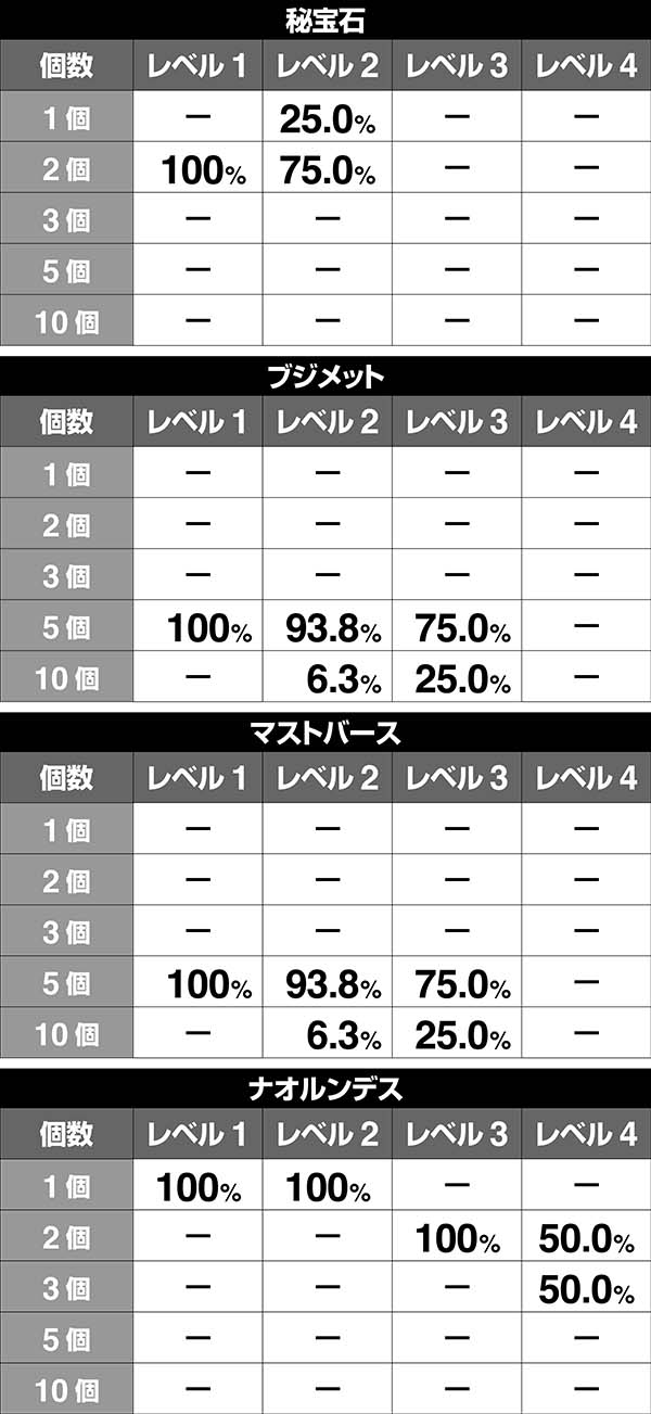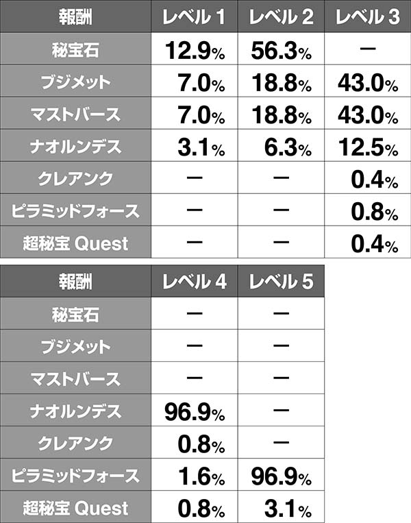 レベル5はピラミッドフォースと超秘宝Questのどちらに当選した場合でも、個数は1個で固定。