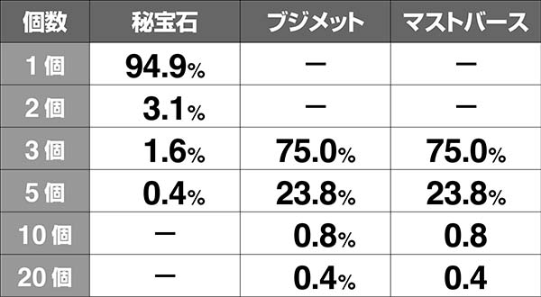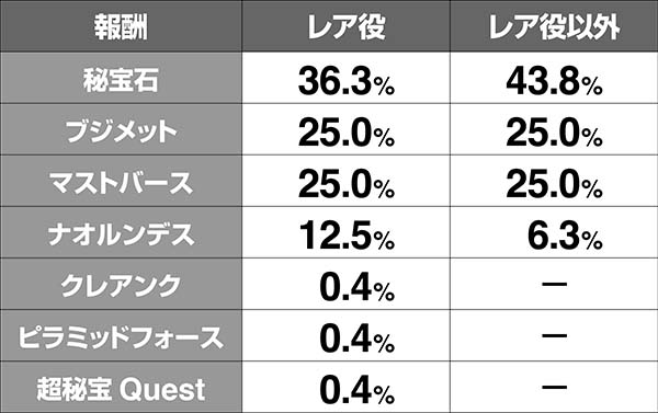 Rev中はレア役成立で秘宝石2個以上獲得と、獲得率だけでなく獲得個数も優遇されている。