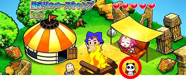 ダンジョン攻略ごとに移行するベースキャンプは、登場するキャラやキャンプ自体の種類で設定示唆をおこなう。